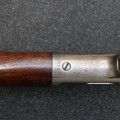 Très beau modèle 1889 en version carabine avec canon de 20’’. L’ensemble est bien homogène. Le métal à une belle couleur et les marquages sont bien présents et bien lisibles. Le numéro de série de cette carabine Marlin 1889 est 51XXX. Le fonctionnement est impeccable, le mécanisme puissant. Les rayures du canon sont bien marquées et le canon est en très bon état. L’anneau de selle est présent conformément à cette version. Les têtes de vis montrent une usure mais sont très propres. Le bois a une belle couleur et pas d’incidents notables. C’est une belle carabine d’un modèle fabriqué à 8.300 exemplaires.