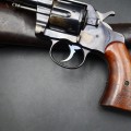 Le revolver Colt double action modèle 1889 et ses différentes déclinaisons introduit une modernité dans les productions d’armes de poing de moyen calibre double action. Cette arme de poing à un système de fonctionnement simplifié par rapport au Colt 1877 double action. Ce modèle sera choisi par l’Army et la Navy pour équiper ses différentes unités en remplacement du Colt Single Action Army. Toutes versions confondues la société Colt en fabriquera plus de 270.000. C’est un classique des armes de collection Américaines.