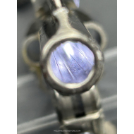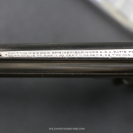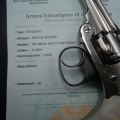 Il conserve un nickelage d’origine quasi parfait, magnifiquement complété par de superbes plaquettes en nacre. Les parties métalliques sont en excellent état ; les très légères marques d’usure du nickelage rappellent l’authenticité et l’ancienneté de cette arme de la fin du XIXᵉ siècle. Les marquages réglementaires sont conformes, profonds et parfaitement lisibles, mettant en valeur la qualité de fabrication de ce revolver Smith & Wesson. Le numéro de série 22XXX indique une fabrication très précoce et est matching avec le barillet et le canon.